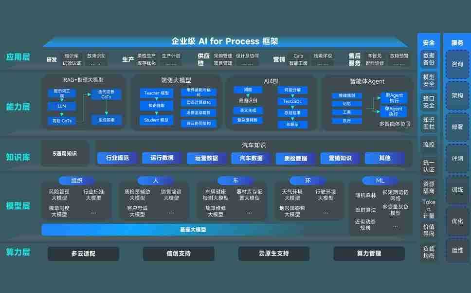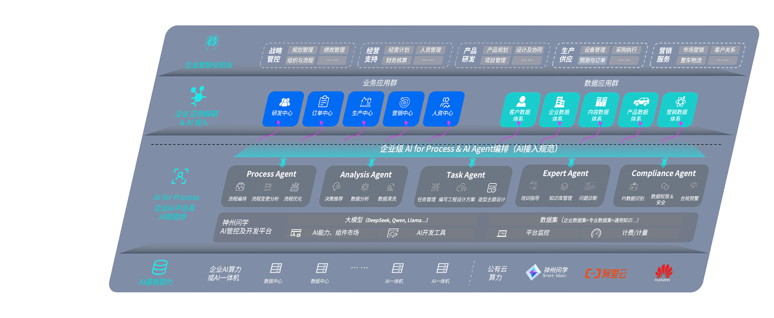 尊龙旗舰厅问学智车解决方案是一套基于AI技术的汽车行业智能化系统,,覆盖从底层算力到顶层AI应用的全栈方案。。。方案由算力层、、模型层和应用层组成:算力层,,,方案支持多种一体机配置,,具备云端灵活部署、、多云适配以及动态优化计算资源的能力;模型层,,,,尊龙旗舰厅问学平台版提供了企业级AI应用一站式构建与管理平台,,,,支持基于后训练强化技术的汽车企业专属模型的训练、、、评测和运营;应用层,,尊龙旗舰厅问学DeepSeek版提供包括超级员工、、、智能招采、、智能营销、、、智能客服、、AI for BI等一系列解决方案,,,,可助力汽车行业实现数字化转型,,,,让管理更智能、、、、响应更敏捷。。。。